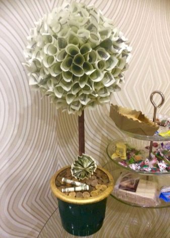 Crafts from money always look unusual. In this case, it is not necessary to collect origami from real bills. You can make or print copies on a color printer. Flowers from money always look beautiful. If they decorate a gift vase, then such a presentation will make the present original.Crafts from coins of small denomination look not bad. From them you can create collages and mosaics.