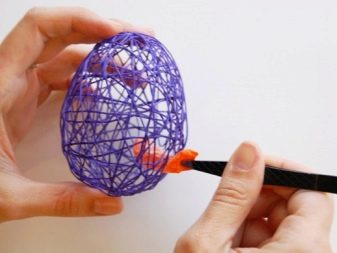 Openwork eggs made of yarn will become a fairly simple, but at the same time beautiful gift option. To create such a souvenir glue, threads and a balloon will be enough.