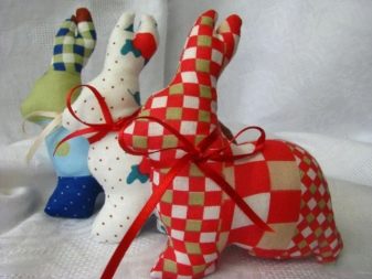 Valuable and appropriate for the holiday will be hand-sewn things. In this case, you can make an Easter rabbit. To create it, you will need to use the templates, and you can fill the animal with an ordinary synthetic winterizer or threads. Several rabbits can be made to present to each member of the family.