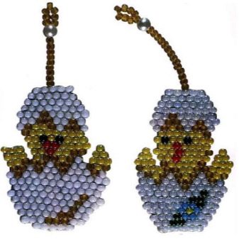 Multi-colored charms made of beads will be a suitable Easter souvenir. Such a product can have a different shape, repeating the outlines of the main symbols of Easter. Such a present can further decorate a bunch of keys or hang a souvenir on a lady’s bag. If you prepare a gift from beads in advance, then you will be able to embroider a mini-icon or a picture with the symbols of celebration, angels, spring, etc.