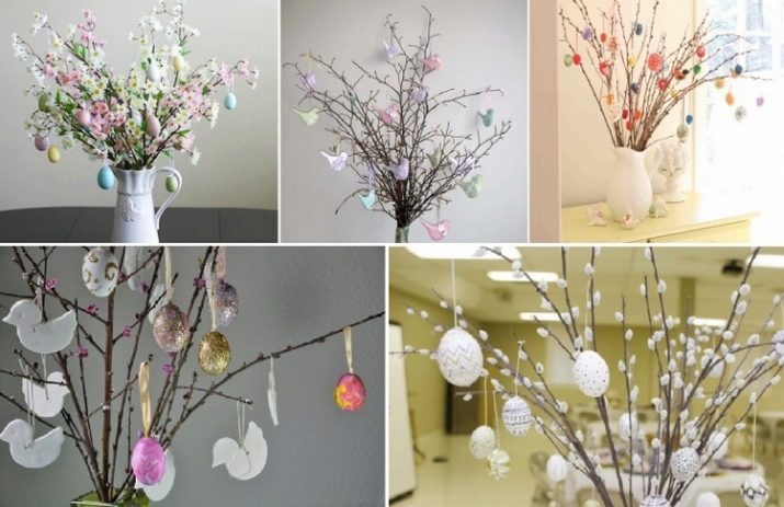By Easter, it will turn out to make a festive tree, which, in addition to the holiday symbol, will act as a talisman for the family hearth. To create it, you will need to make a bouquet of willow branches, decorating them with ribbons, fresh flowers, and angel figures that can be cut out of paper and attached to a long stick.
