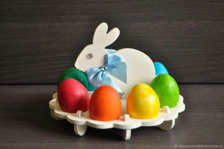 Among the list of ideas for creating a gift with your own hands, it is worth noting the options for home-made egg stands. Each will be designed for one egg, there are a lot of design options - it can be a rabbit whose paws will hold the egg or just a multi-colored wrapper, which you can create together with the children. If you wish, you can make a whole box for eggs, decorated in this way. Rabbit patterns can be printed or drawn by yourself.