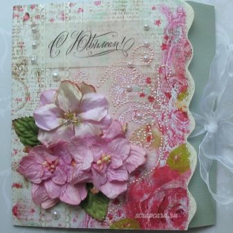 The hero of the occasion can be given unusual attributes and accessories that they make on their own. Beads made of pasta look pretty creative, or a jubilee birthday card made using the scrapbooking technique. A congratulatory card must be beautifully signed, wishing the hero of the day all sorts of benefits.