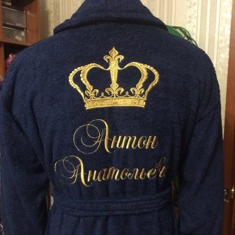 A man can be handed copies of weapons, a pedigree of a noble book, a men's terry dressing gown with a personalized embroidery, or a personal nameplate for a room.