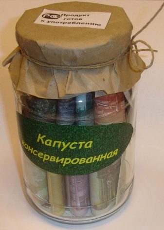 The money bouquet collected from folded paper notes tied with a ribbon looks original and unusual. Money tubes can be invested in a beautiful glass vase. The packaging for preservation is unusual in which notes are enclosed. You can roll up such a container and stick a label with the inscription “Cabbage”.