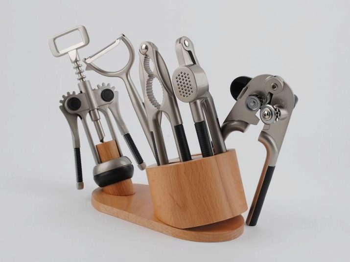 - Set of openers. Another option for a kitchen gift, which will be very useful.The kit usually includes: an opener for tin lids, a corkscrew, a can opener, a garlic press, a potato peeler, and nutcrackers.