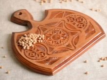 Also a great gift will be a wooden board, which can be decorated with carvings. She will decorate the interior of the kitchen.