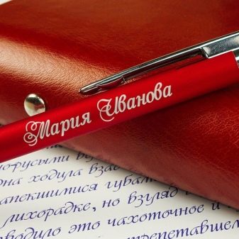 The individuality of such a gift may lie in certain features that distinguish it from similar accessories. So, it is possible to emphasize the uniqueness of this souvenir with the help of certain inscriptions, symbols, patterns. It can be branded fountain pens with the name of the recipient of the gift, with the image of his zodiac sign or initials, with a parting wish. Typically, such drawings and inscriptions are applied to the body of the product using engraving.