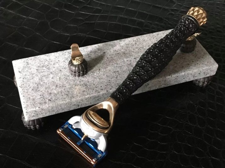 Handmade razor with precious stones inlaid and using precious metals - This is a unique present that will appeal to every man. As a rule, such products are packed in special cases made of precious wood, which can also be engraved with a personalized name.