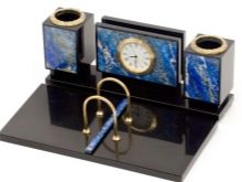 They look very unusual writing sets from selenite. It is very easy to find a table lamp, which is also made of this stone, in the kit for such a set.
