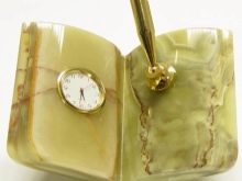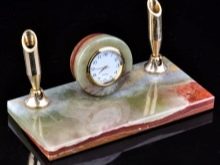 Table clock made using natural stone, - a great gift for any man. Such watches will become a worthy decoration of any desktop. Similar products can be made of onyx, agate or marble.