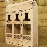 It is made relatively simply, at minimal cost, this souvenir looks simple and tasteful. If you show imagination, then you can make such crafts in various variations and forms. Men in a gift appreciate simplicity and benefit, so for a presentation you can make a shelf out of plywood: with or without a pattern - you decide, this is a matter of taste
