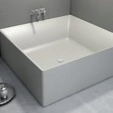 The category of expensive plumbing, which is in demand due to its unique attractiveness, as well as the durability and wear resistance of raw materials. The stone provides good sound insulation, perfectly retains heat inside the structure. As a rule, porcelain or marble is used in the production of mini-baths.