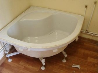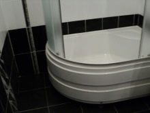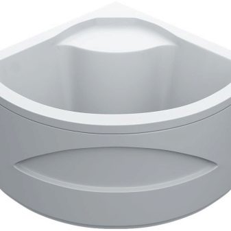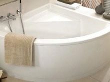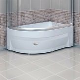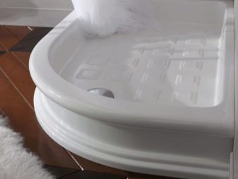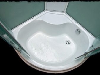 Corner designs with high sides can be a convenient solution for decorating bathrooms. Such options will decorate the interior when equipped with glass doors, providing comfort during operation.