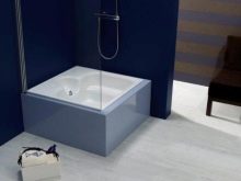 Such deep shower products are popular due to their attractive appearance, in light of which a design of this kind in the bathroom can become a real decoration of any room. Ceramics, as well as cast iron, will require a little more time to warm up, but the ability to retain heat in the material is at the proper level.