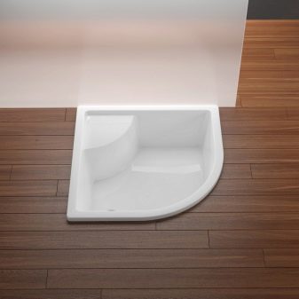 In addition to designs with regular shapes, there are non-standard varieties on the market that do not have any standard parameter requirements. It is these variations of shower trays that are made to order, taking into account the characteristics of the bathrooms in each case. The dimensions and shapes of asymmetric models are limited only by the imagination of the customer and the capabilities of the manufacturer.