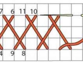 Once the glue with which you fix the threads has dried, remove the base. Now we need a light thread. With its help, weave a seam called "goat". To make the pattern look neat, hide the end of the thread inside and fix it with glue. If you are not familiar with the goat pattern, focus on the picture and the diagram attached below.