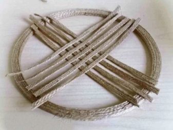 A step-by-step scheme will be like this. The first step is to make a circle of threads, for this the selected form is wrapped 3 times with jute and coated with glue. Once the composition has dried, the first element can be removed. Here is what should happen. We make two such elements.