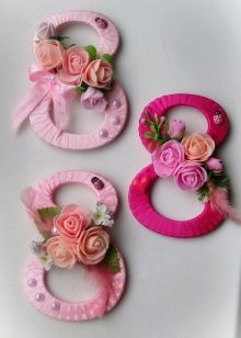 On March 8, simple crafts most often give: miniature bouquets, graceful compositions, bracelets or crests decorated with original decor. Children can make applications - working with the material is completely safe.