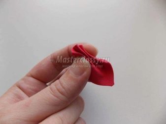 - Next, it will be necessary to form the petals in order to subsequently collect a flower bud from them. Heat the workpieces on the iron. It is better to set the temperature in the silk-wool mode. Fold the details according to the type of accordion, twist the upper part of the petals.