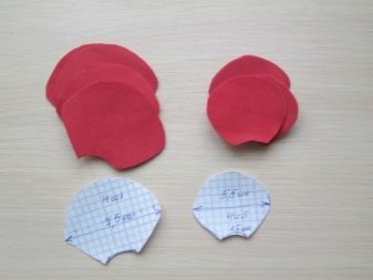 - Templates should be transferred to the main material, and then cut them as accurately as possible. From foamiran saturated red, you will need to make 4 small petals (size - 5.5x4.5 cm) and 4 or 8 large. The size of a large petal can reach 7.5x5.5 cm.