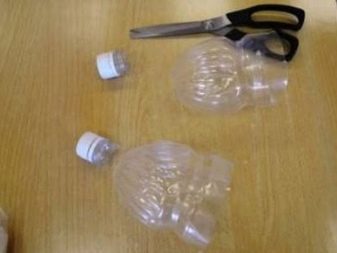- Two empty plastic bottles with a semicircular top. You can immediately cut off the lower halves of the bottles.