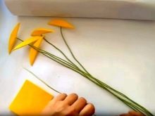 - Using a hair dryer, you need to warm the edges of the petals and give them a realistic shape with your fingers.
