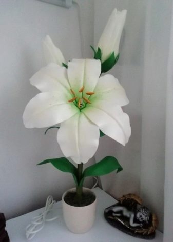 Isolon is the material from which very interesting lighting fixtures are made. It can be a stylish table lamp, a chic floor lamp or a miniature nightlight - there are a lot of options. Let us consider in stages how the master can independently assemble a beautiful lamp from home-made lilies.