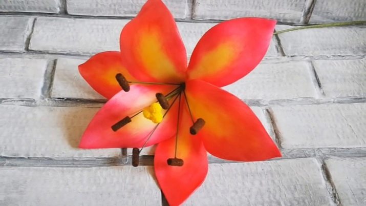 - In order for a flower made from Isolon to really look as realistic as possible, the master must know exactly what this culture is in nature. For comparison, you can print photos of lilies or bring home a real flower. The key to success is attention to all the little things and details: petals, stamens, leaves.
