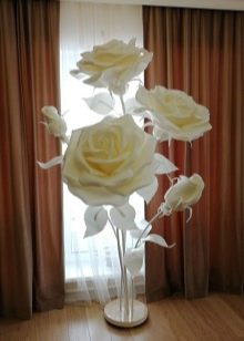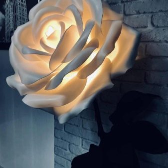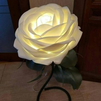 First of all, you need to choose the type of flower, and then determine its size and height. If you like roses, why not make a lamp in the form of your favorite plant. It is better to make the support large so that it can withstand the load of the structure. Your attention is invited to a master class on the manufacture of do-it-yourself rose roses from Isolon. This does not take much time if you immediately prepare everything and follow the instructions.