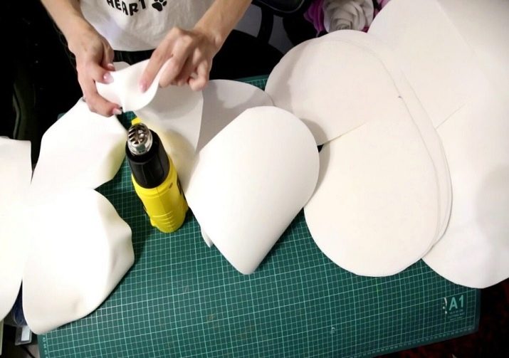 To make the rose flower look natural it is necessary to blow every petal with a hairdryer and give it an art form. The material ideally lends itself to thermal influence, so anything can be made from it. After cooling, the isolon takes on the form in which you left it.