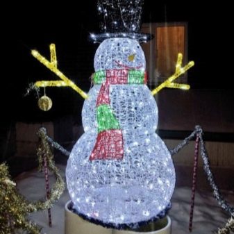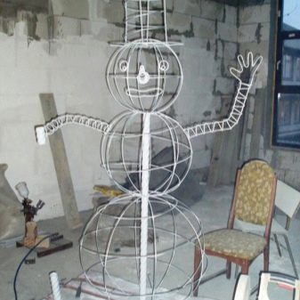 Before embarking on the process of making decorations for the street, it is necessary to prepare the work surface and assemble the garland diagram. Batteries should be installed in the garland power supplies and their functionality checked. After that, you can begin to make a figure of a snowman.