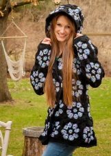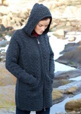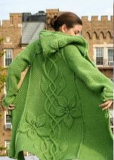 Knitted Short Coat Suitable for a fairly warm autumn. Length varies from knee to slightly higher. Decorated with various types of knitting - bulk, braids, rhombs. It is fastened either with buttons or simply with a belt.