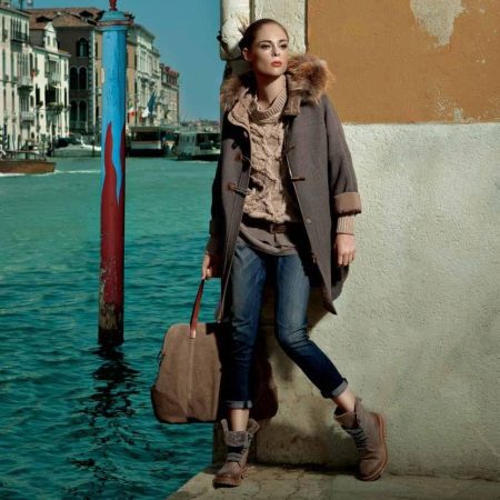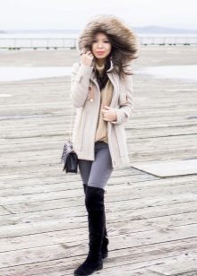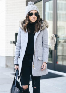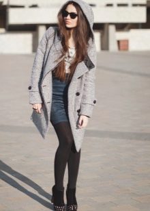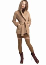 - The short coat from a coat, first of all, differs in length. The short coat is up to the middle of the thigh. Therefore, it is important to observe the proportions when forming the entire image. Having picked up the wrong clothes and shoes, you can easily break the balance between the bottom and the top. So before buying it is worth trying on a short coat with trousers, and with a skirt, with high-heeled shoes, and with a flat sole.