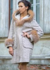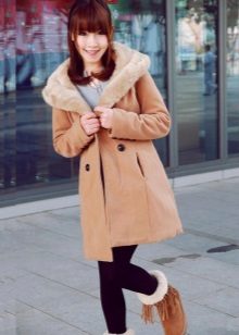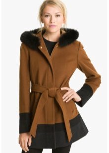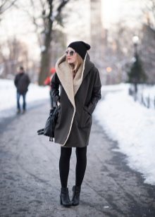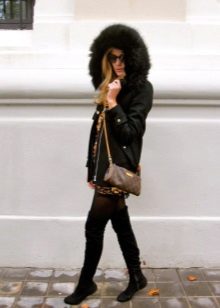 Short coat made of leather with fur. Of course, this model looks more like an elongated jacket. Usually, the collar, hood, cuffs, and the edge of the product are turned off with fur. Any fur is allowed, mink, astrakhan, raccoon look beautiful. In such a short coat it will be not only warm, comfortable, it also looks expensive and stylish.