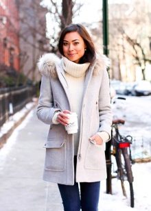 For heat-loving women, designers began to complement the short coat with a synthetic winterizer. A thing on a synthetic winterizer is characterized by excellent heat-insulating properties, it is allowed to wear it until the winter.