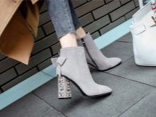 Models of short ankle boots with a heel decorated with rhinestones are especially elegant.