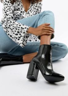Manufacturers also offer patent leather ankle boots and fabric. The latter, like suede models, are not suitable for a walk in wet weather. Lacquered models are more stable, but they do not always look advantageous.