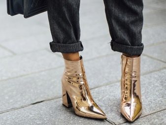 Ankle boots of gold and silver color look very original. Of course, manufacturers offer yellow, scarlet, blue and other colors of this kind of shoes.
