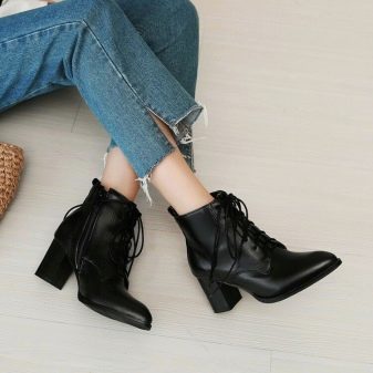 Winning and ankle boots lace up, but, of course, models with laces for everybody, not every fashionista likes to tie shoes in the morning.