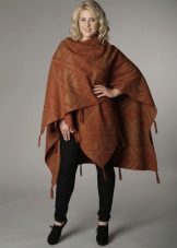 You can create a poncho-cape with your own hands, with a stole. You just need to throw it on your shoulders and fasten it with a beautiful brooch in the chest area.