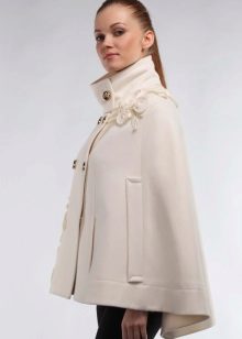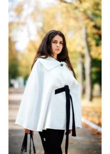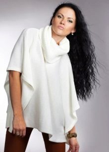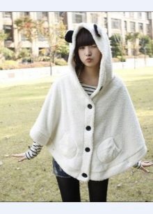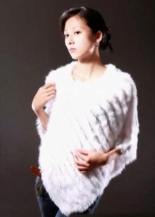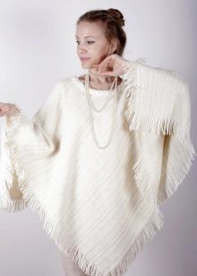 White poncho-cape is perfect for swarthy owners of dark hair, because blondes can “fade” and get lost against the background of a snow-white product.