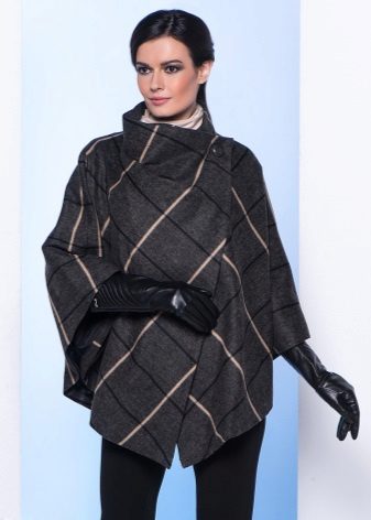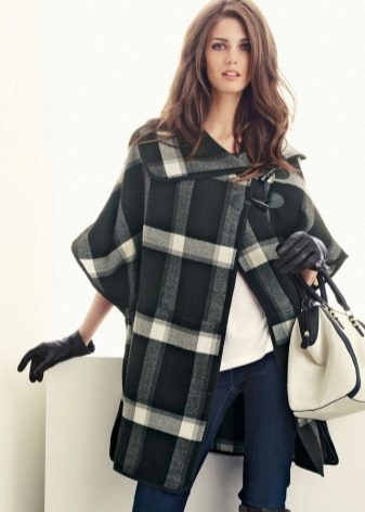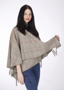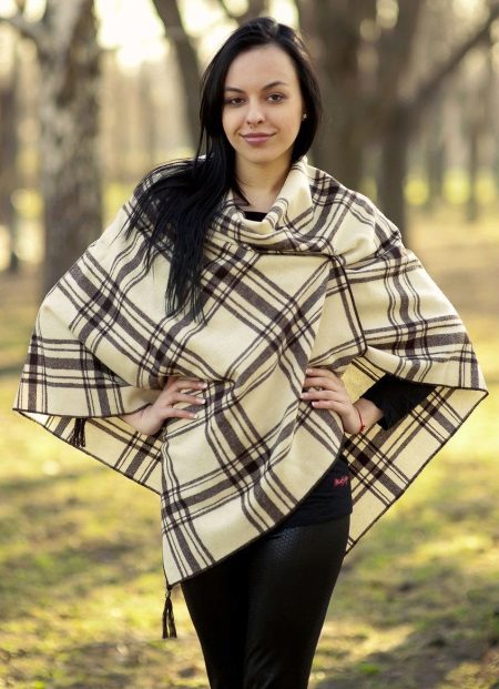 - The cage has not lost its popularity for several seasons, which means that the ivory poncho in a large dark cage will be a hit at any time of the year. Such a product can be combined with both casual and sportswear, creating a variety of stylish images.