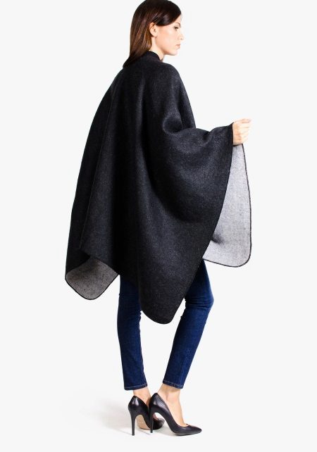 - A more restrained and elegant look has a double-sided oversized poncho-cape.Thanks to the loose style, the product is very cozy and warm, the light gray side will allow you to slightly dilute the dark shades of the image, and the dark one will be more practical and less brand.