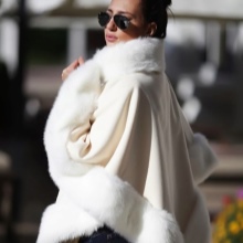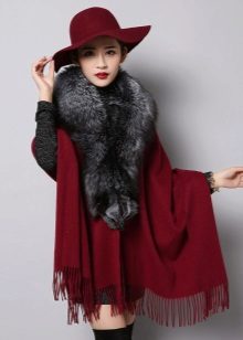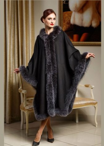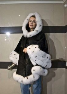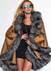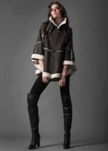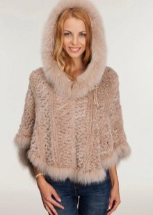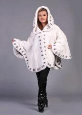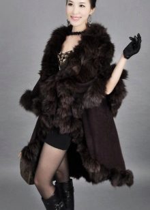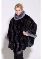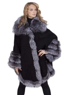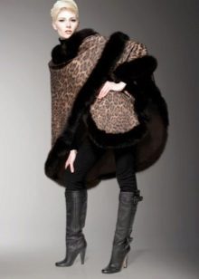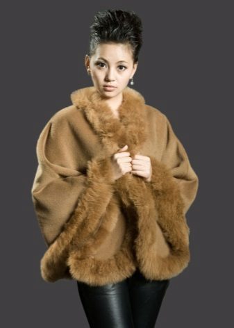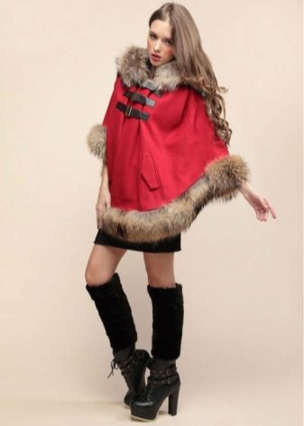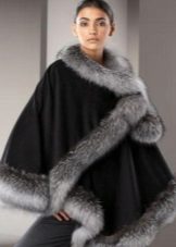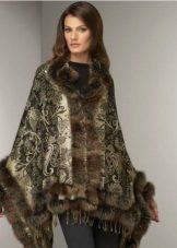Designers have developed many options for the material for the poncho and its decoration. Now you can find a camouflage military model, or you can with an Irish cell. For sewing fur trim use mink, sable, ermine, marten, silver fox and other fur. Models with a hem are very practical. Fur trim is not only a beautiful element: even small inserts retain heat perfectly.