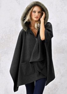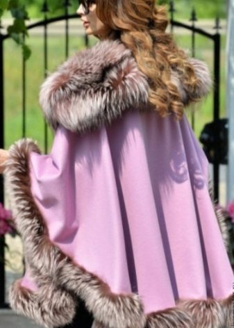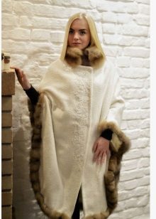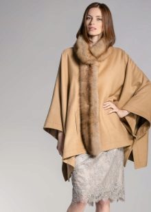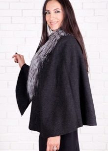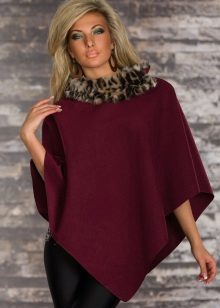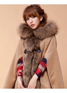 Refined and feminine look have a poncho with a fur collar. In addition, the fur collar will not only decorate, but also protect against wind and frost. And on rainy and snowy days, the skin does not get wet and provides a quick disposal of moisture.