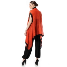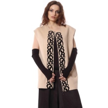 As a rule, a poncho-vest has a restrained, uncomplicated design, but there is a category of elegant models with elegant rounded lines, light waves and various accessories. They are able to add elegance to even a simple, everyday image. Elegant styles are suitable for both adult ladies and elderly ladies.