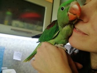 When a parrot gets used to a person, he sits on his head, constantly says, eats from his hands and tries to attract attention by all means.