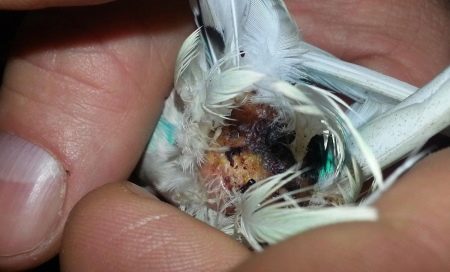 Very often, birds show all signs of self-pinching - this often happens if the animal experiences psychological discomfort in conditions of lack of attention from the owner or his rough handling.