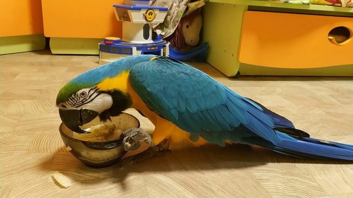 Be sure to foresee the presence in the enclosure of perches, toys, as well as tree branches. Ara is a bird that is extremely demanding of attention from the owner, so that the pet would not be bored in the absence of the owner, it is worth equipping the aviary with all kinds of ropes, ladders, labyrinths and puzzles.